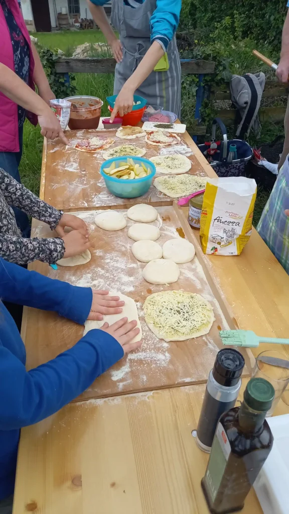 Beim italienischen Nachmittag starten wir mit den Vorbereitungsarbeiten gegen 11 Uhr und backen verschiedene Brote gemeinsam am Nachmittag.
